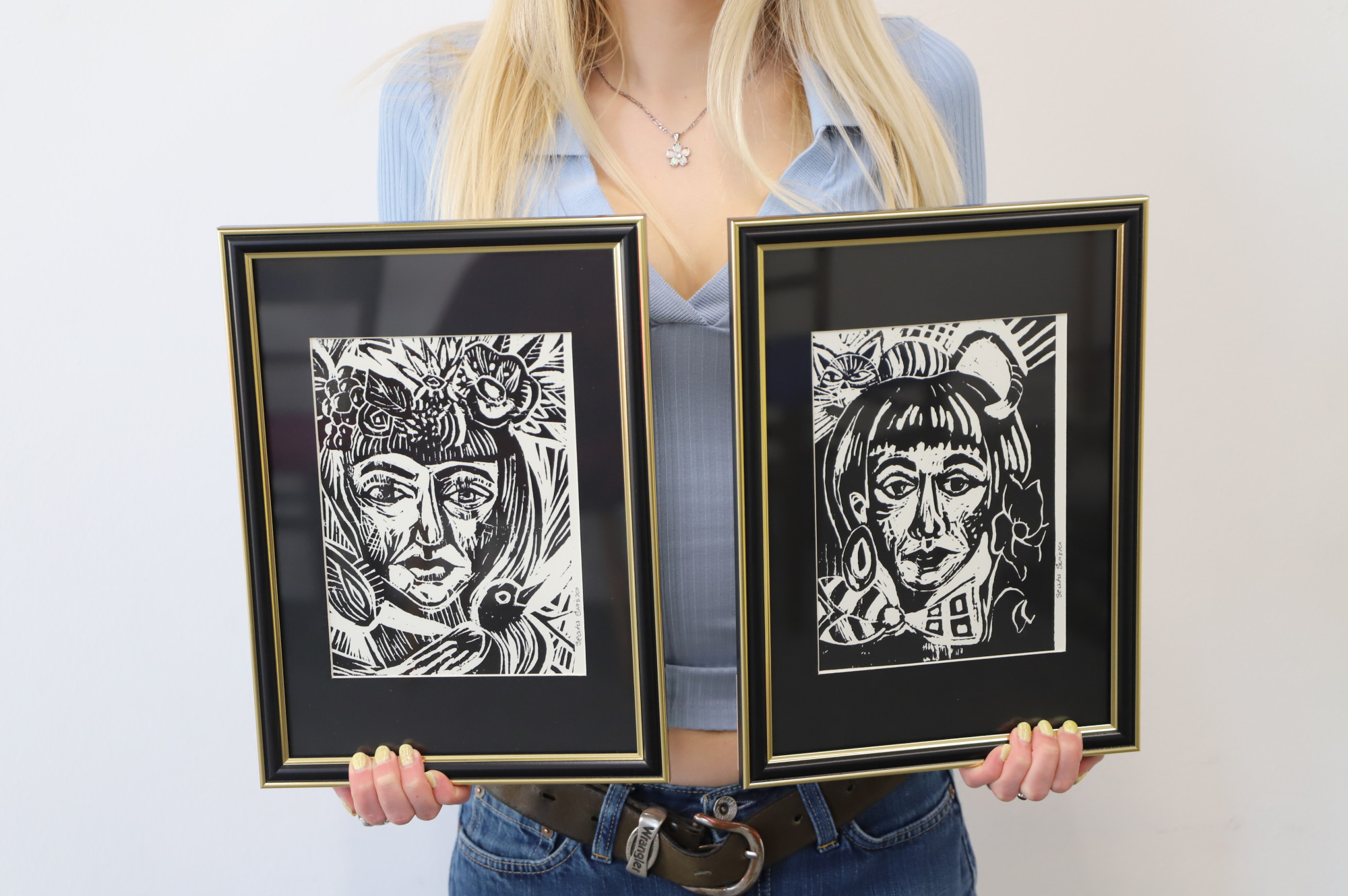 40. Beata Świszcz "Z kotem linoryt", "Z ptakiem linoryt"