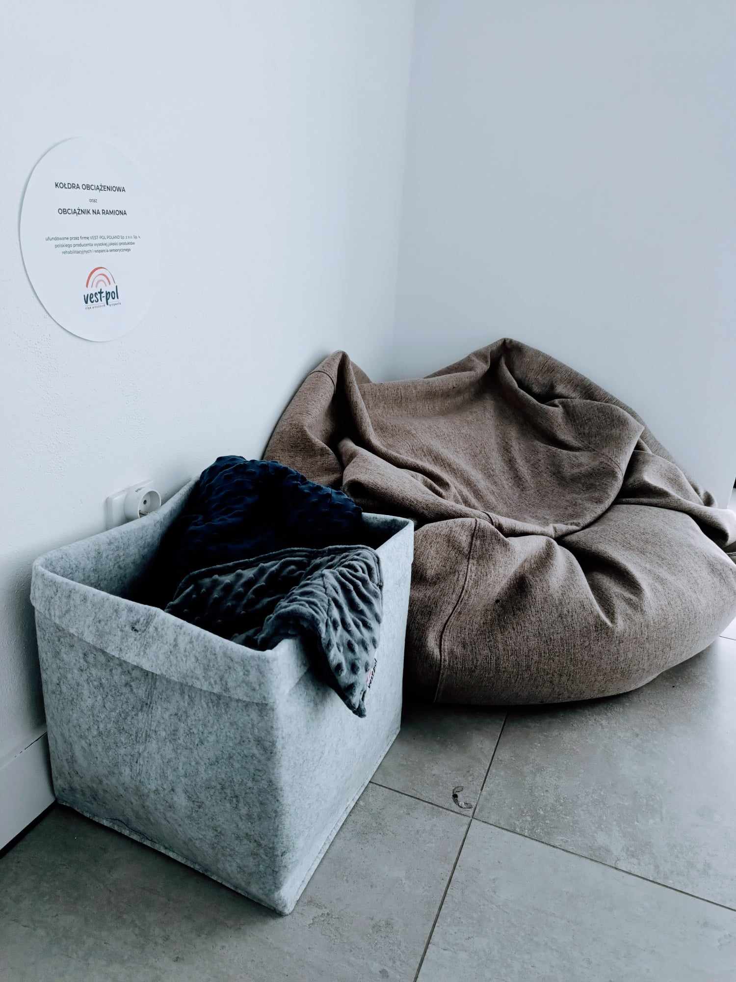 Z myślą o wszystkich, którzy nas odwiedzają, również o osobach wysoko wrażliwych, w spektrum autyzmu oraz o odbiorcach ceniących spokój, stworzyliśmy specjalną strefę wyciszenia. To miejsce, w którym każdy, kto tego potrzebuje, będzie mógł się uspokoić przy nadmiernym pobudzeniu. W strefie wyciszenia, znajduje się kołdra obciążeniowa oraz obciążnik na ramiona, który podarowała nam firma Vest-Pol Poland Sp. z o.o. Sp. K, polski producent wysokiej jakości produktów rehabilitacyjnych i wsparcia sensorycznego. Dziękujemy za to wsparcie!